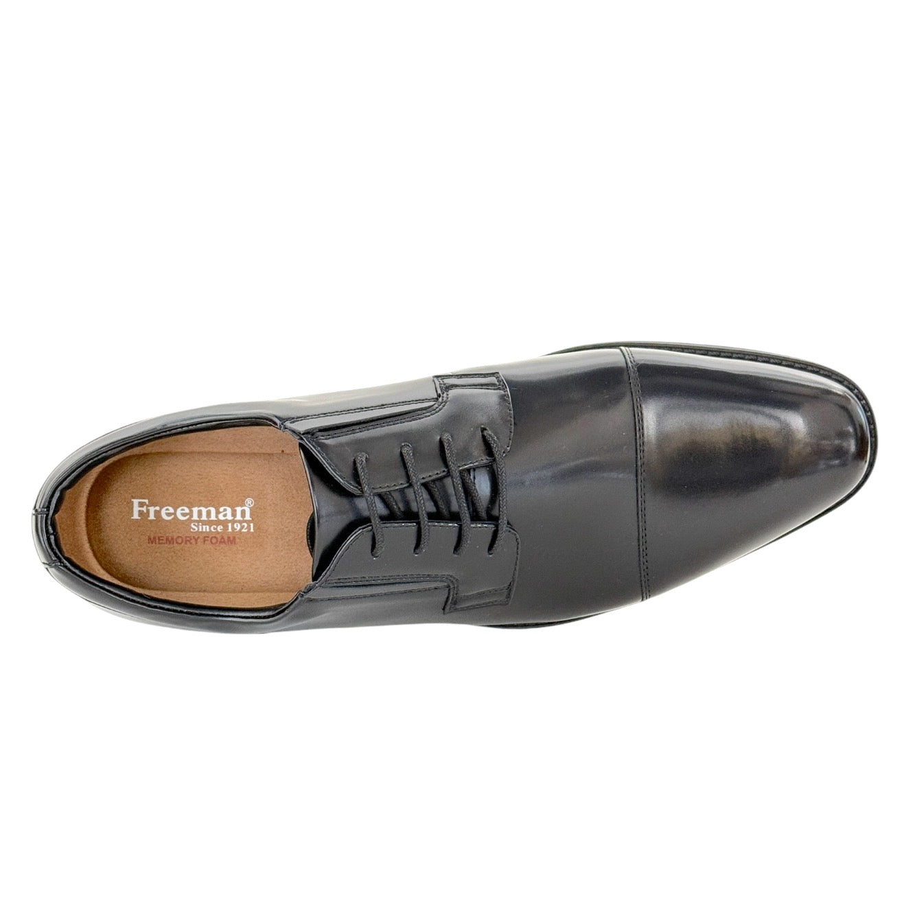 New! The Freeman Marshall Oxford offers the perfect blend of modern-classic design and all-day comfort. This stylish shoe features a soft-square toe shape and a polished premium imitation leather upper. A removable memory foam footbed cushions every step, keeping your feet happy from morning to night. The Marshall also includes "Stay-tied" waxy shoelaces and hidden elastic side gores for enhanced comfort. A rubber sole provides excellent traction and durability. A perfect shoe for all dress and business occasions.