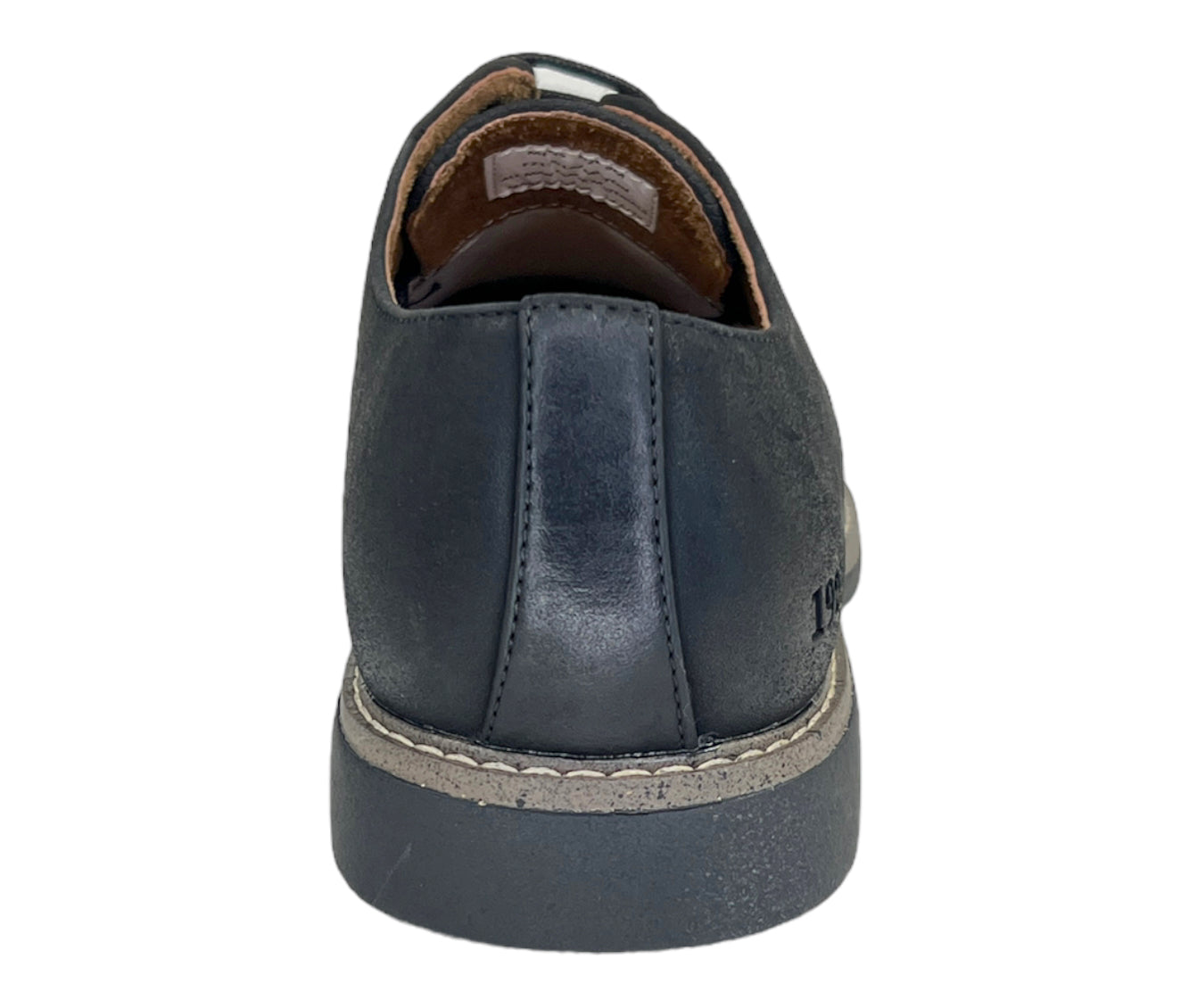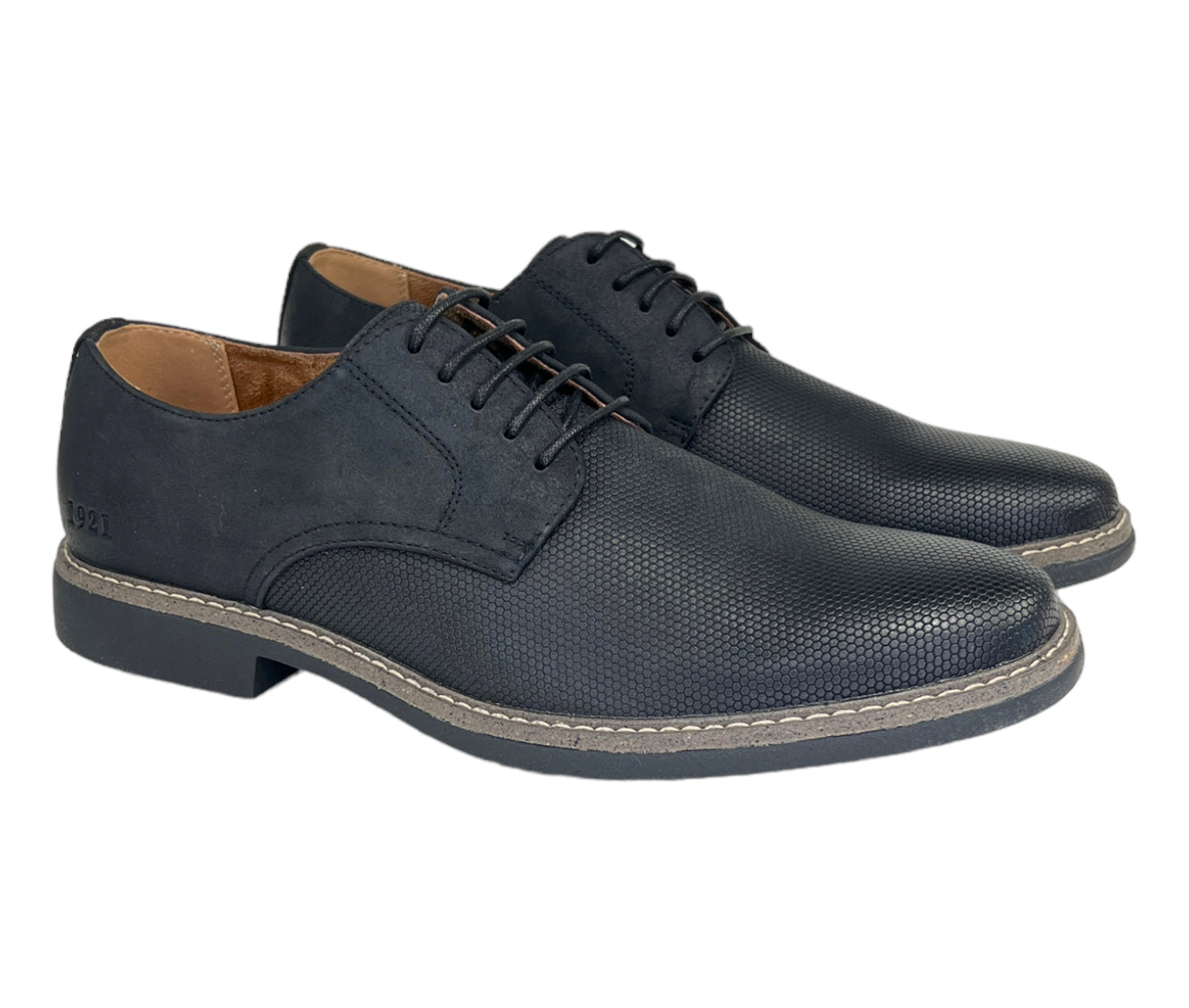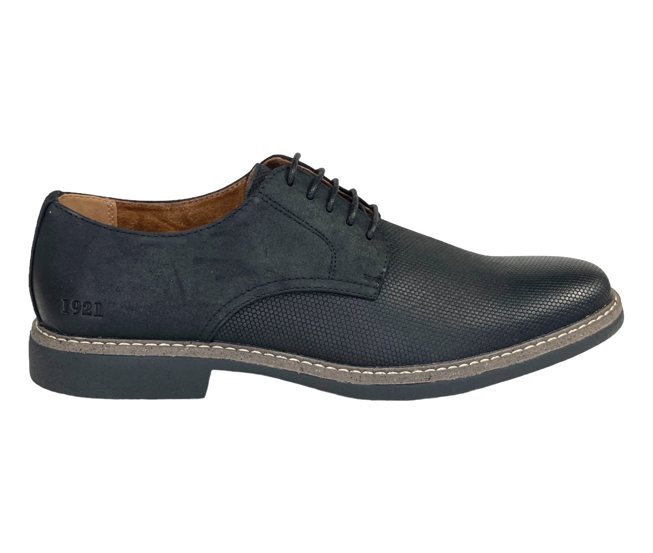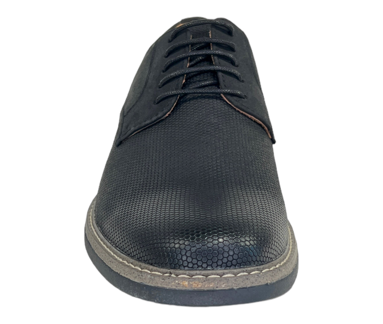 Introducing the Milton from our Dress Casual collection, a stylish shoe that exemplifies sleekness. This variant boasts a modern, round toe shape and an embossed faux leather upper. Its five-eye lace-up design comes with waxy "stay-tied" laces, ensuring a secure fit. The shoe also features breathable microfiber linings and a memory foam cushioned, removable footbed for ultimate support and comfort. Completing the design is a textured traction TPR outsole with a stitch welt.